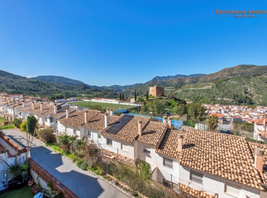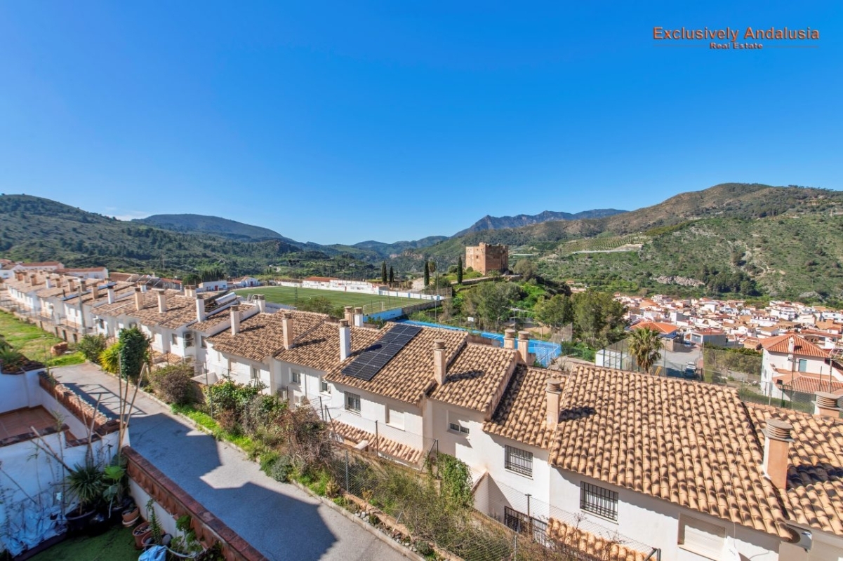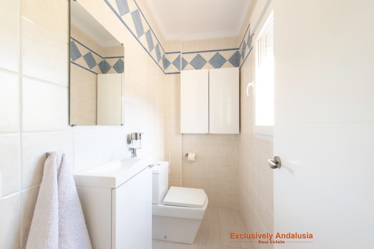On the first floor accessed by the bright staircase there is a bright open landing of which are three double bedrooms and a family bathroom. The primary bedroom has a range of fitted wardrobes and an en-suite fully tiled shower room. There are double sliding glass doors to a balcony with open views over the castle and countryside. Bedroom two is a double (currently with twin beds) also with fitted wardrobes and glazed sliding doors leading to a private terrace with the same incredible views as the primary. A fully tiled family bathroom has a full bath with shower over, vanity unit, w.c. and bidet. The third bedroom is to the front of the property, it is also a double with built in wardrobe, sliding glazed doors to a balcony and a glazed single door leading to a small private terrace with views of the lower reaches of the Sierra Nevada.